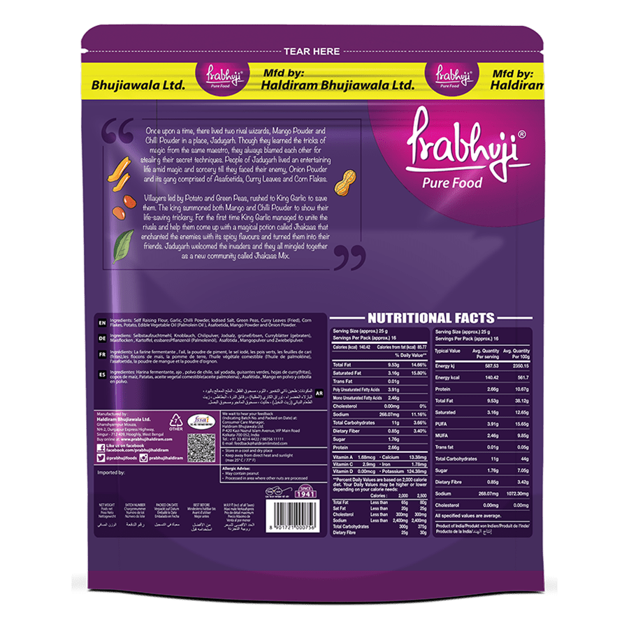 Prabhuji JHAKAAS MIX is an exhilarating fusion of crispy snacks, bursting with vibrant Indian flavors. Indulge in this exciting blend for a thrilling snacking experience that’s sure to delight your taste buds.