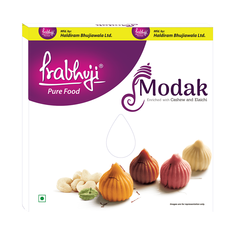 Prabhuji’s Kesar Milk Modak: Traditional Indian sweets infused with saffron, crafted from creamy milk for a rich and aromatic flavor. Enjoy the indulgent sweetness and traditional taste in every bite.